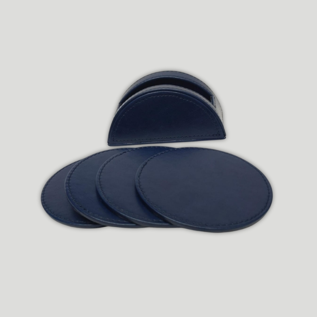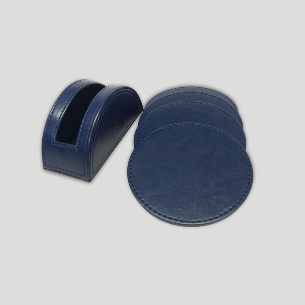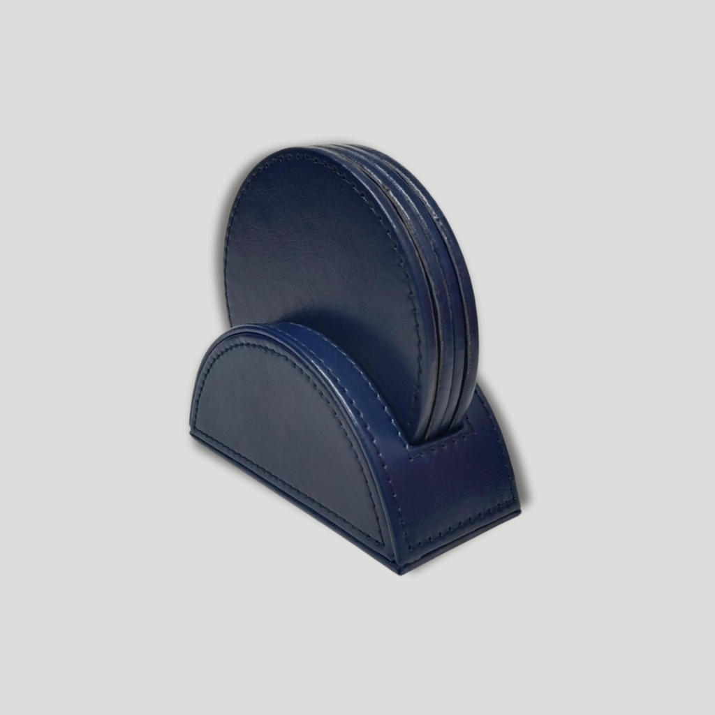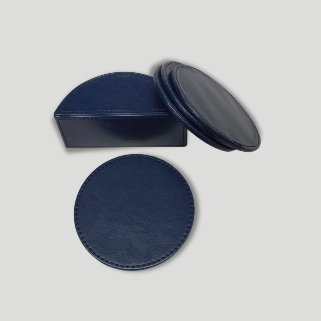 Upgrade your table setting with the Prachihandicraft Coaster Set—a practical yet stylish choice for any professional or home environment. Crafted from high-quality faux leather, these coasters deliver on both durability and aesthetics. The deep green shade with contrasting white stitching adds a refined, modern accent to your workspace, café, or living room. The set features six round coasters, presented in a sleek half-moon holder for easy, organized storage. Each coaster is designed to shield your surfaces—wood, glass, or marble—from water rings, heat stains, and spills, helping you maintain a polished, professional atmosphere.